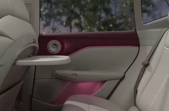 后排方面,新款岚图知音将提供小桌板以及空调温区控制,提升二排乘客的乘车舒适度。车门处的扬声器边缘带有氛围灯,提升精致感。此外,新款岚图知音联手华为首发搭载鸿蒙座舱 HarmonySpace 5 以及车载冰箱,预计使用体验出色。