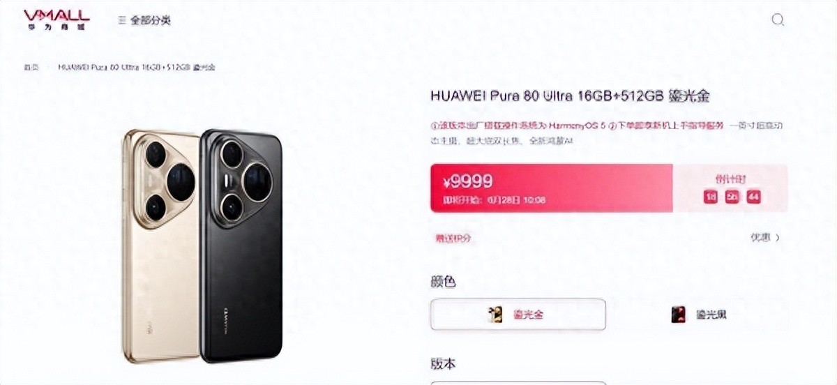 第二天也就是6月28号上午十点零八分还能再买一次,起售价要9999元。有两种版本可选,一个是16G内存加512G存储,另一个是16G加1T存储。这应该是华为目前影像功能最好的手机了。