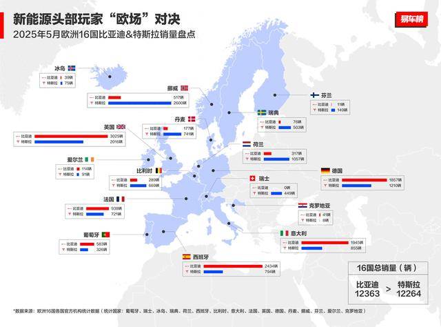 2025年5月,比亚迪在欧洲五大市场(英法德意西)以10199辆销量首次单月破万,以6619辆优势碾压特斯拉,中国电动车凭借本土化战略与技术输出实现历史性反超。